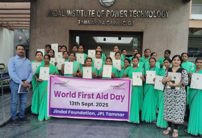 रायगढ़ तमनार।जिंदल फाउण्डेशन, जेपीएल तमनार द्वारा विश्व प्राथमिक चिकित्सा दिवस पर जागरूकता कार्यक्रमों का आयोजन जिंदल पावर के जिप्ट सभागार एवं गारे पालमा माइंस परिक्षेत्र के सीएसआर कार्यालय में किया गया। इस दौरान वात्सल्य परियोजना अंतर्गत 70 गांवों में कार्यरत 64 स्वास्थ्य कार्यकर्ता ’स्वास्थ्य संगिनियों’, संस्थान में कार्यरत ठेका कर्मचारियों एवं स्थानीय लोगों को प्राथमिक उपचार, फस्र्टएड के महत्व की विस्तृत जानकारी ओपी जिंदल हास्पिटल के विशेषज्ञ वरिष्ठ चिकित्सक डाॅ. अश्विनी पटेल एवं डाॅ. सुजीत चक्रवर्ती ने जानकारी प्रदान की। विशेषज्ञ चिकित्सक द्वय ने आपातकालीन परिस्थितियों में त्वरित और सही प्राथमिक उपचार देने की तकनीक समझाई, जिससे जीवन बचाया जा सकता है।