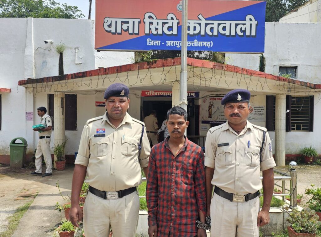 आरोपी दीपक राम उम्र 25 वर्ष, निवासी ग्राम आगडीह, थाना सिटी कोतवाली जशपुर के द्वारा अपराध स्वीकार करने व प्रयाप्त अपराध सबूत पाए जाने पर विधिवत गिरफ्तार कर न्यायिक रिमांड पर जेल भेजा गया है।